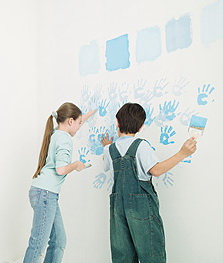 оклеить стены двух- и трехцветными обоями. Лучше всего сочетать две расцветки: внизу - более темная, однотонная, вверху – светлее, с отчетливым рисунком.
