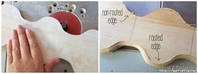 Полочка у нас фигурная, для этого из картона вырезаем шаблон и расчерчиваем доску