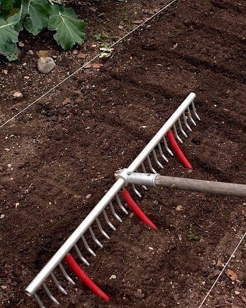 Грабли с отрезанными трубами для предварительного измерения расстояния между рядами.