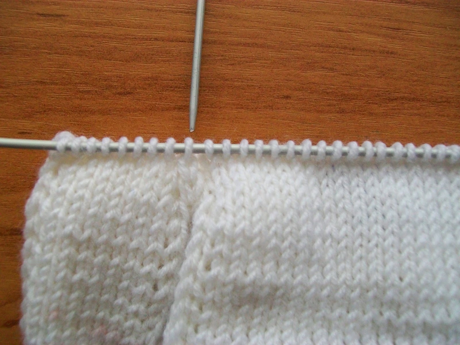 И дальше, в каждом лицевом ряду прибавляем по петле для формирования большого пальца.